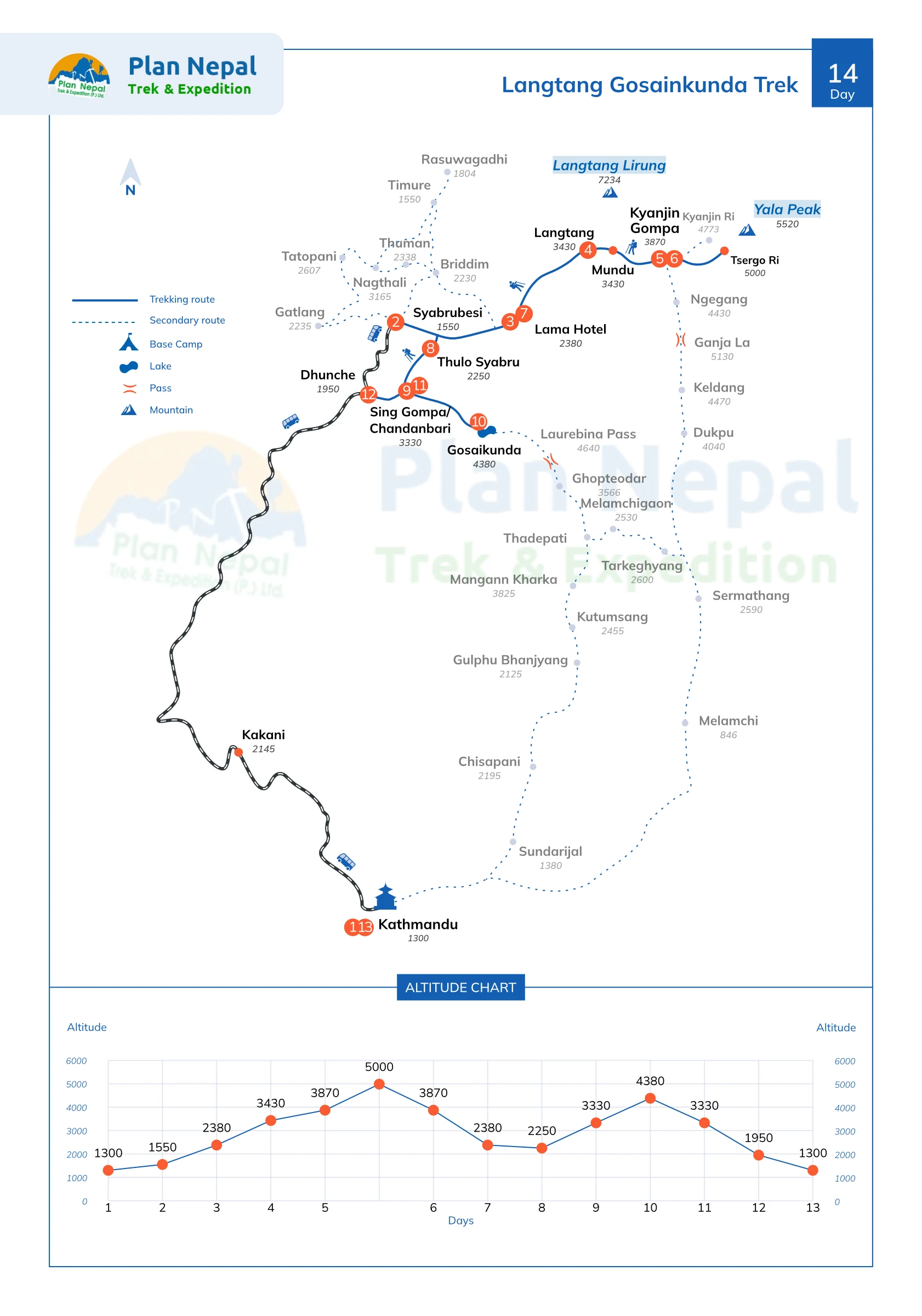 Yes, you will need two permits to trek in the Langtang Valley and Gosaikunda region: the Langtang National Park Entry Permit and the TIMS (Trekkers’ Information Management System) Card. These permits help with conservation and safety monitoring. Plan Nepal Trek & Expedition will assist in arranging all necessary permits before the trek, ensuring a smooth and hassle-free experience for travelers.